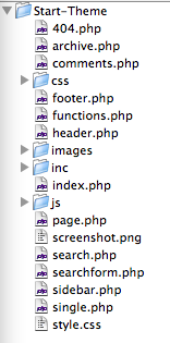 Zuerst einmal heisst unser Theme „Start-Theme“ genauso wie der Ordner indem alle die zu diesem Theme gehörenden Dateien und Ordner liegen.
